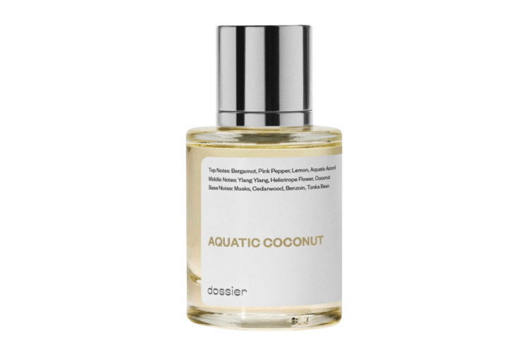 If you're looking for an affordable summer fragrance that doesn't sacrifice quality, consider Dossier's Aquatic Coconut. It’s inspired by Maison Margiela's Replica Beach Walk, another warm-weather favorite. This solar piña colada combines salty watery accord with the sparkle of citrus and pink pepper. A few spritzes will transport you to a summer day on the beach, with the caress of a warm sea breeze, a subtle smell of sunscreen, and the sensual feeling of sand on the skin.