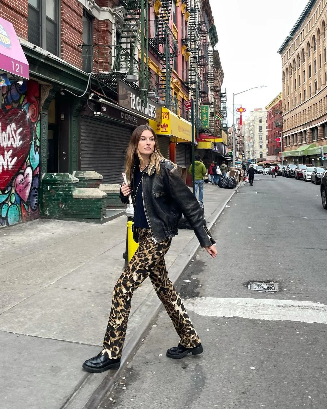 Whether it’s a flirty mini skirt or cool baggy jeans, leopard print bottoms instantly make any outfit a bit bolder. Take inspiration from the French on how to style this print with effortless chicness.