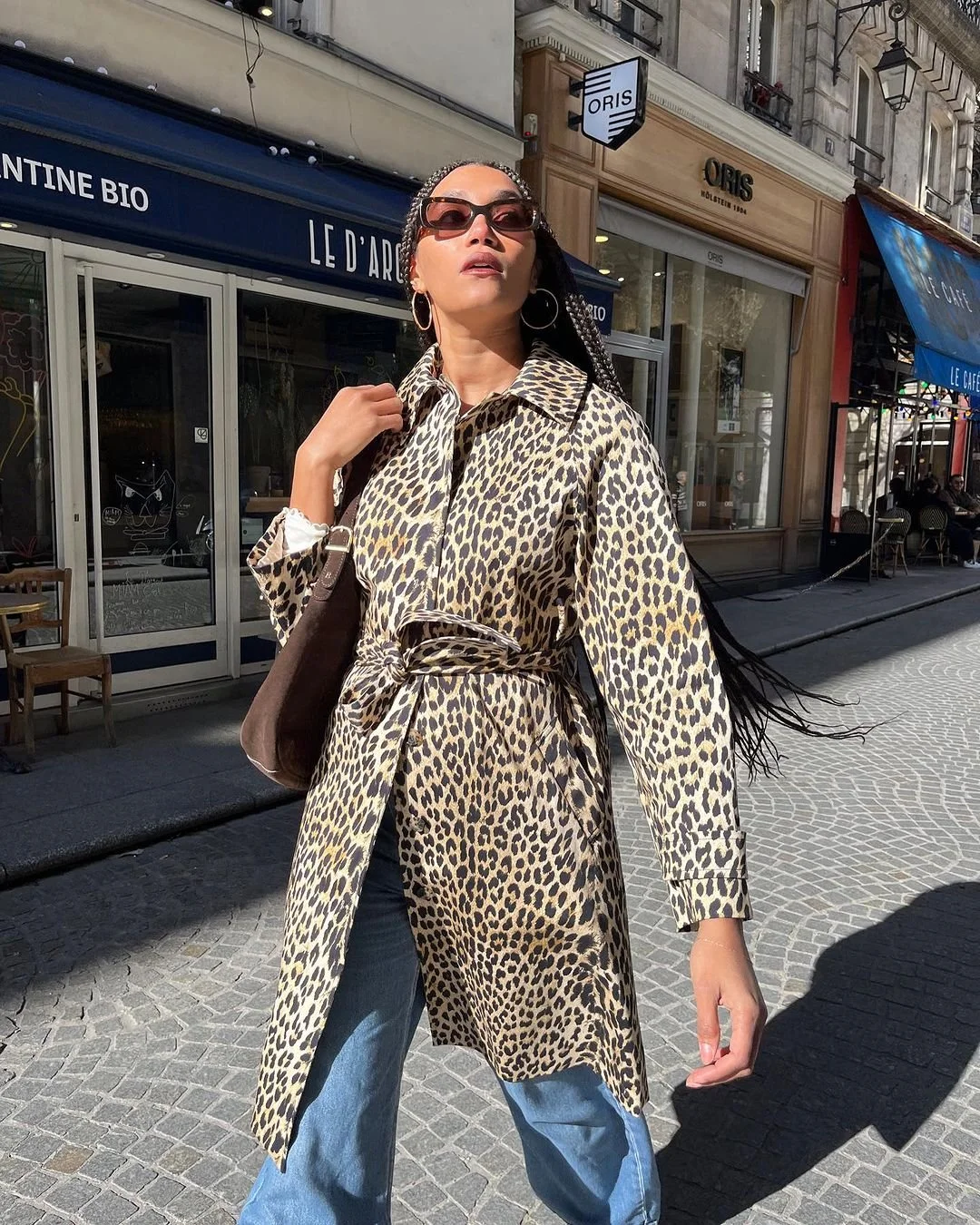 For a Parisian weekend look, throw a leopard print blazer over jeans and a simple tee. Add some ankle boots, and you’re ready to go. Or channel your inner Jeanne Damas by pairing a leopard coat with straight-leg jeans, a cozy knit, and block heels for a chic stroll through the city.