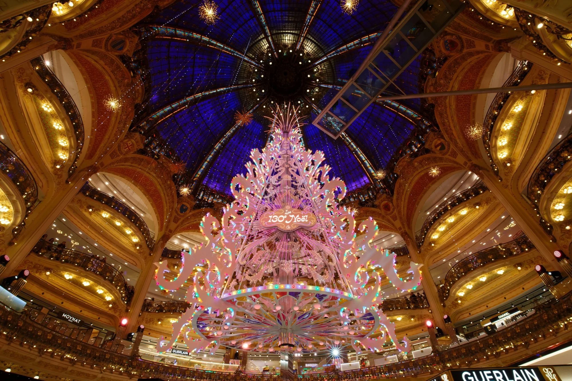 Inside these stores are just as merry and bright. The soaring glass dome at Galeries Lafayette is transformed into a glittering wonderland, and in the middle of the store stands a giant Christmas tree trimmed with beautiful baubles and twinkling lights. Le Bon Marché also creates a stunning holiday atmosphere with glowing garlands, festive displays, and lavishly decorated trees that capture the spirit of the season.