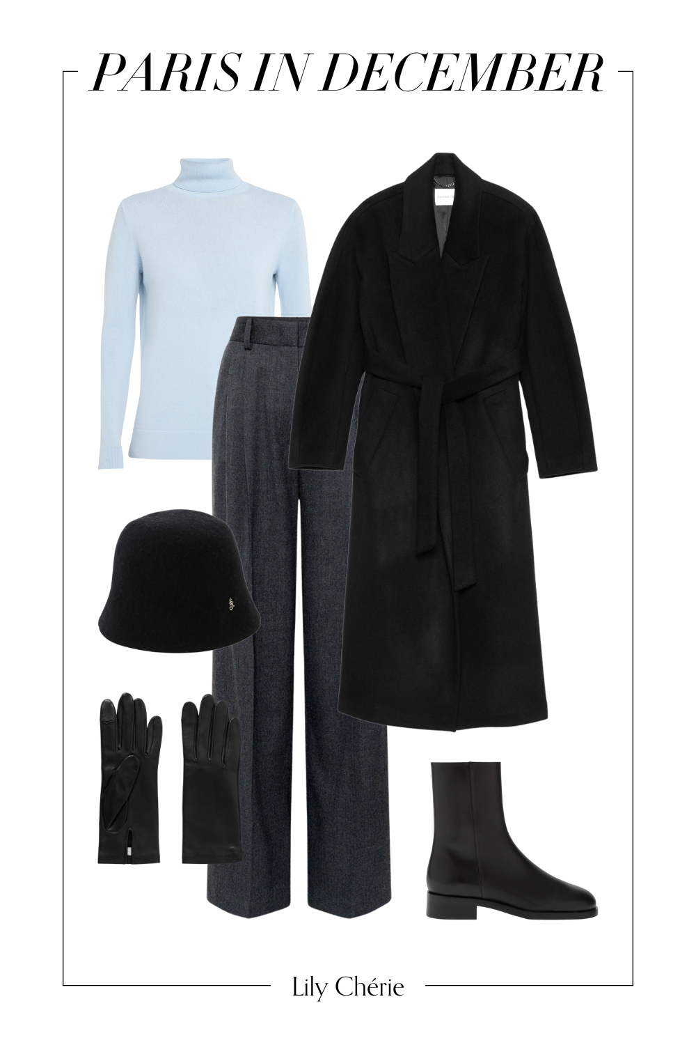 Wool coat. A timeless winter staple, essential for Paris in December. Chic, warm, and effortlessly versatile, a wool coat wears well over just about anything. See my wool coat guide for the top picks of the season.