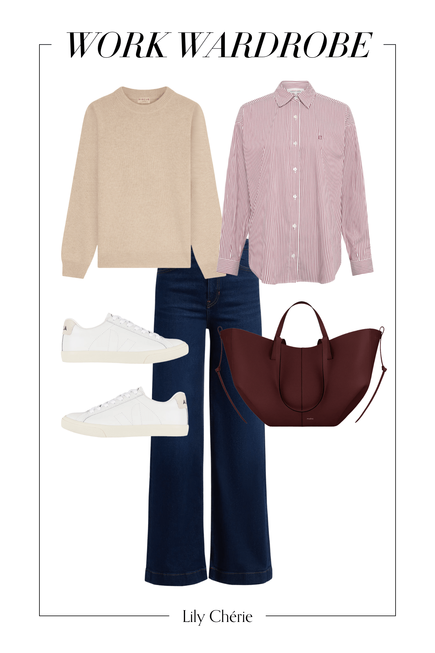 Dark wash jeans. For casual Fridays or smart-casual offices, denim is worth having on hand. A deep indigo wash reads more polished than lighter blues. And of course, nothing distressed! I’m currently loving bootcut and subtly flared styles that can also be worn in more professional settings.