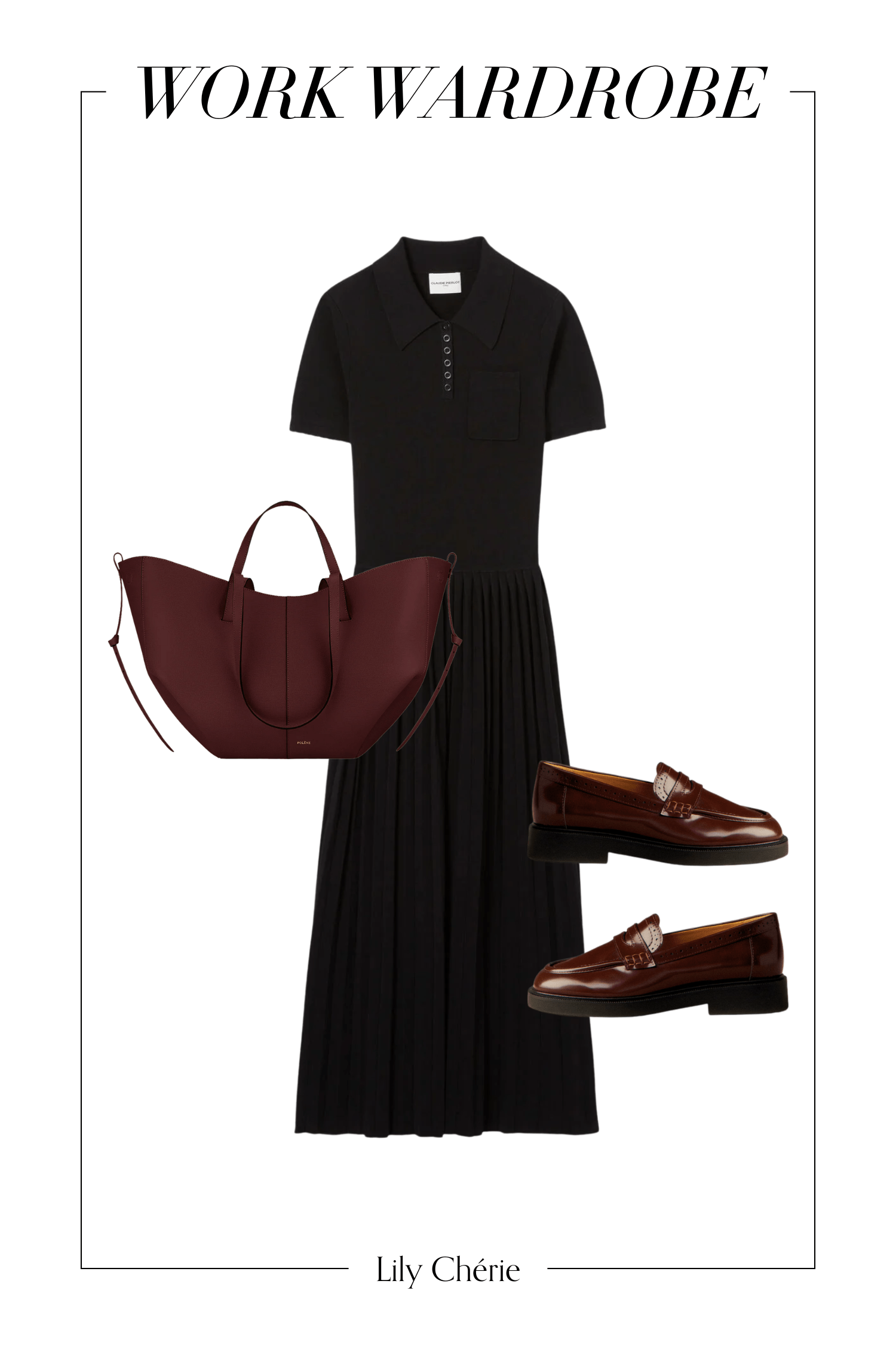 Midi dress. A dress is the ultimate one-and-done solution for work. I love a classic sheath dress, but really any midi length can be styled for the office. This fine knit style from Claudie Pierlot is my favorite pick.