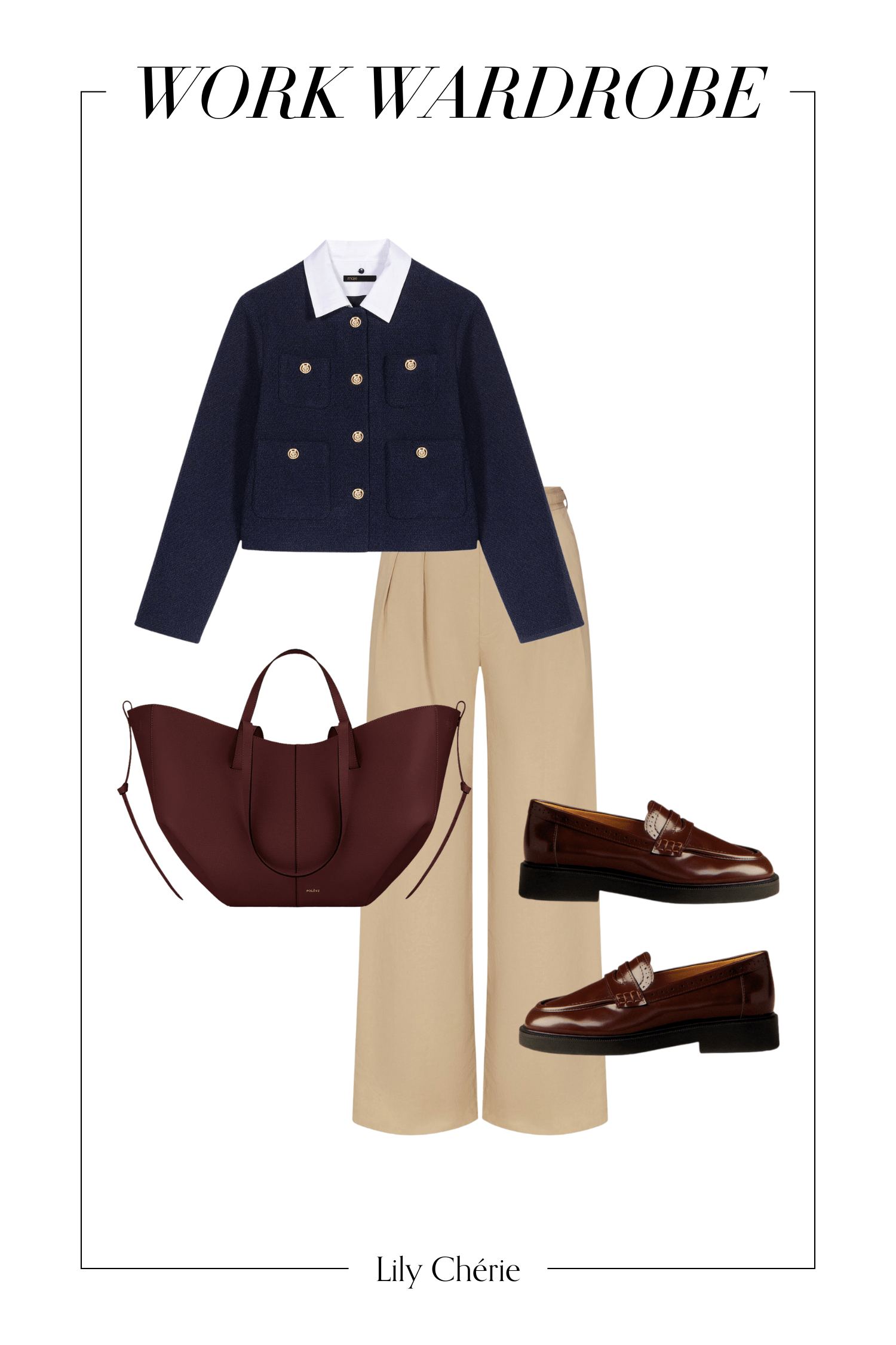Tweed jacket. For a softer twist on suiting, reach for a tweed jacket. It’s feminine, plus brings texture to your workwear rotation. This style from Maje has a lovely collar and buttons that will quickly elevate the simplest of base layers.