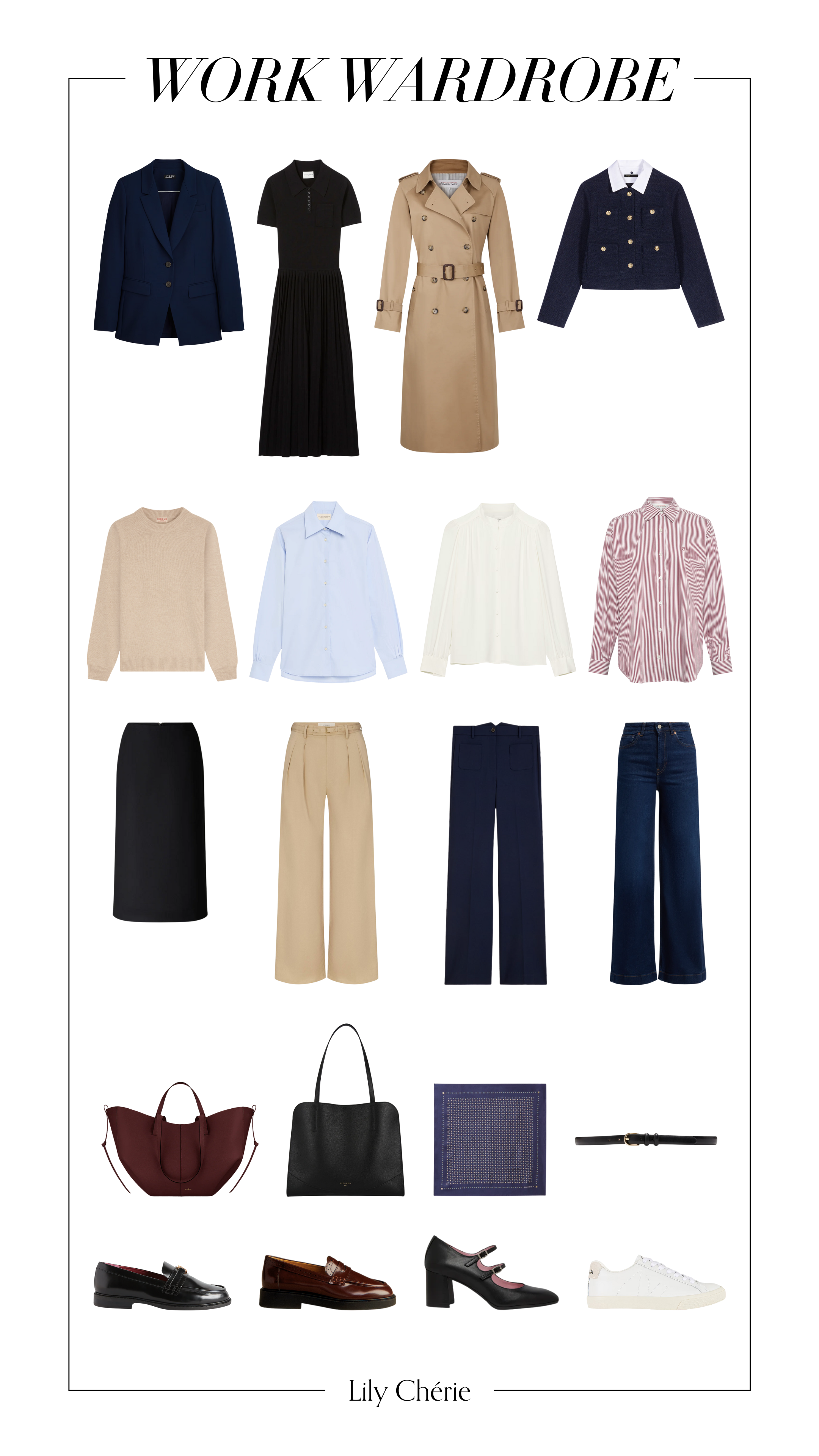 The hardest part of your job should not be getting dressed for it. If you’re looking to upgrade your office outfits and streamline your morning routine, I’ve created the perfect work capsule wardrobe for 2025. It features the work wardrobe essentials that you need to put together smart, chic outfits for the office. There are endless ways to mix and match items, so you’ll always have something stylish to wear. Continue reading for the 20 key pieces you need to create this capsule work wardrobe.